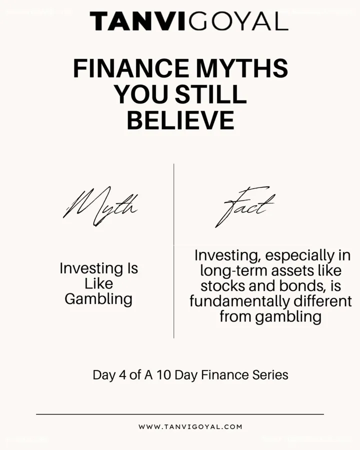 Busting Finance Myths – Day 4 🚫 “Investing is gambling.” Nope, that’s a myth we’re leaving behind. Here’s the truth: 🎯 Investing is not luck—it’s strategy. 🎯 Gambling is about chance. Investing is about planning. 🎯 Long-term wealth is built through research, patience, and purpose—not a quick win. When you...